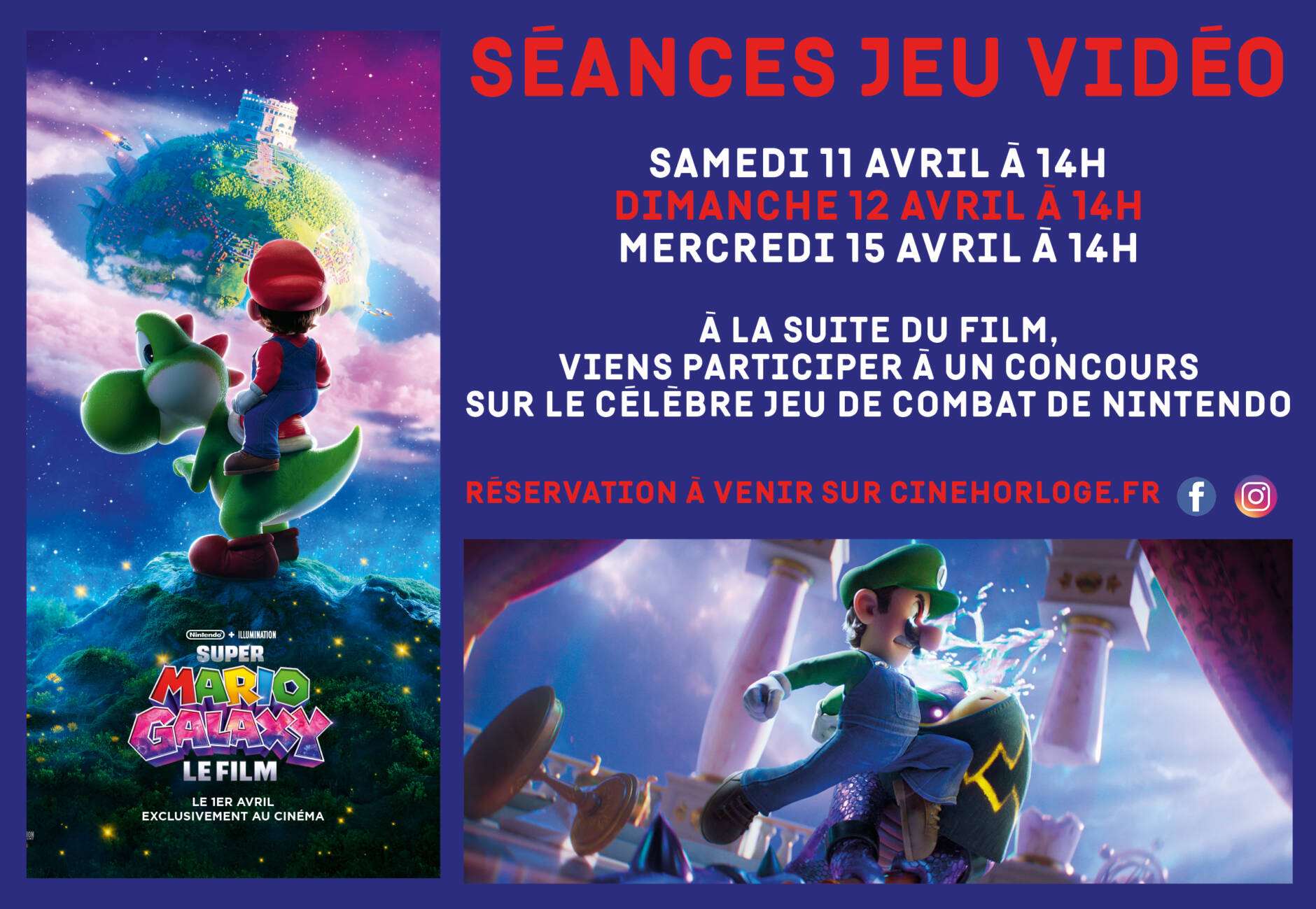Venez participer à nos tournois Super Smash Bros Ultimate à la suite des séances du film Mario Galaxy : le film !